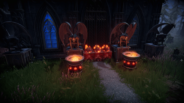The idea of the home is vastly prominent in vampire mythology, the epic presence of their manor looming above a sleepy little village. In a genre like survival games that focus on the shelter, it’s a natural fit for a vampire twist on the genre to use the concept of the vampire palace. We get to lean into that fantasy and provide players with all the tools they need to make a home that can be grand, majestic, but also compelling in its function.