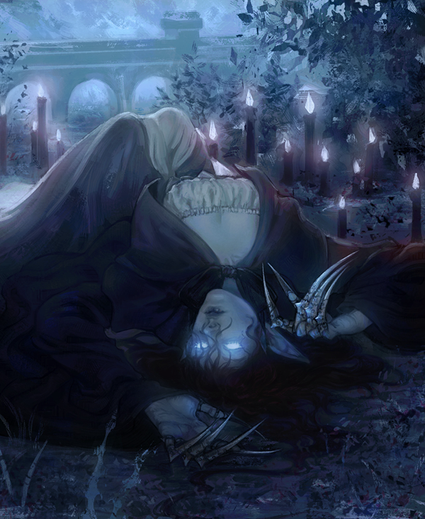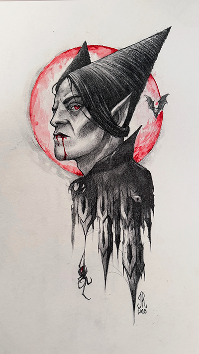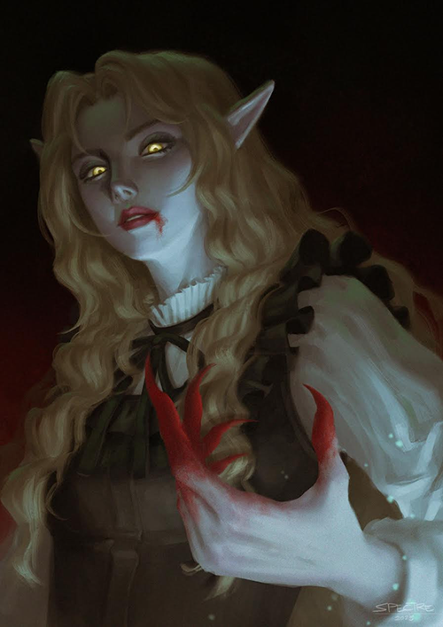 These pieces displayed an outstanding and diverse range of representations of Vampires, exemplifying the many different ways players imagine themselves and their fellow bloodsuckers in our setting. Major factors in judging were execution, composition, concept, and how easily we could picture these existing in the world of Vardoran.