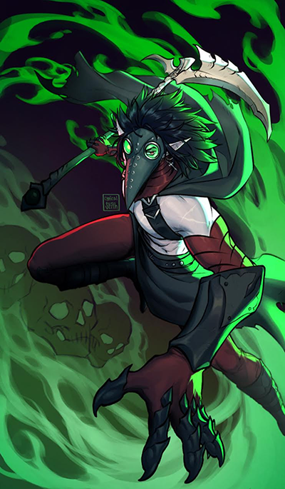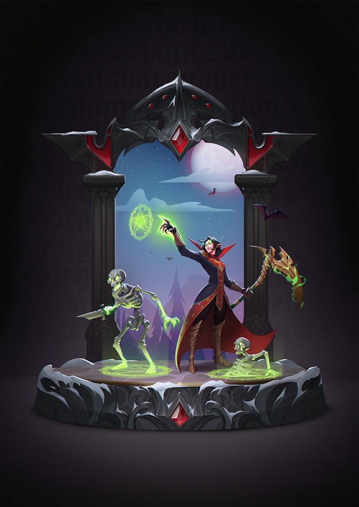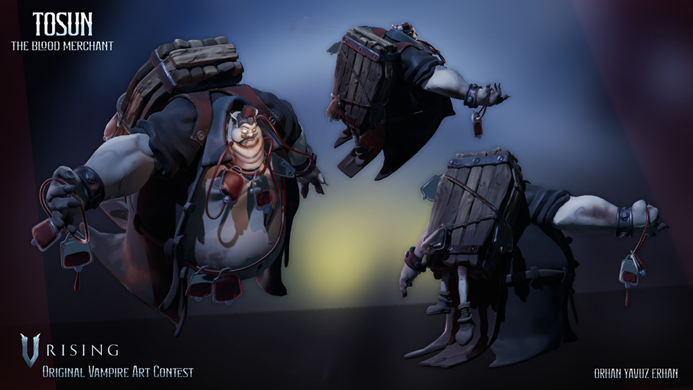 This piece was 3D modeled and concepted in a way we could easily picture as an NPC merchant or V Blood, but clearly has a flair and perspective indicative of the artist! Tosun the Blood Merchant strikes a balance between dark, grotesque, and humorous, not often seen in the Vampire fantasy. With his network of blood bags and the legs hanging out of his coffin carrying bag, this piece was wonderfully creative, charming, and incredibly well done!