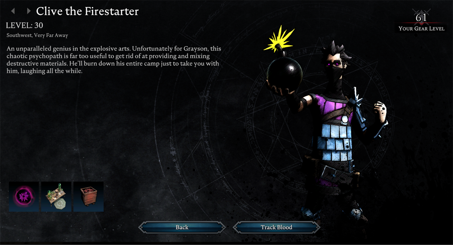 These Spell Points come in various flavors, divided by spell school and then further divided into three tiers. For instance, slaying Clive the Firestarter now awards the recipe for the Alchemy Table, Minor Explosive Boxes, and one Tier 1 Chaos Spell Point.