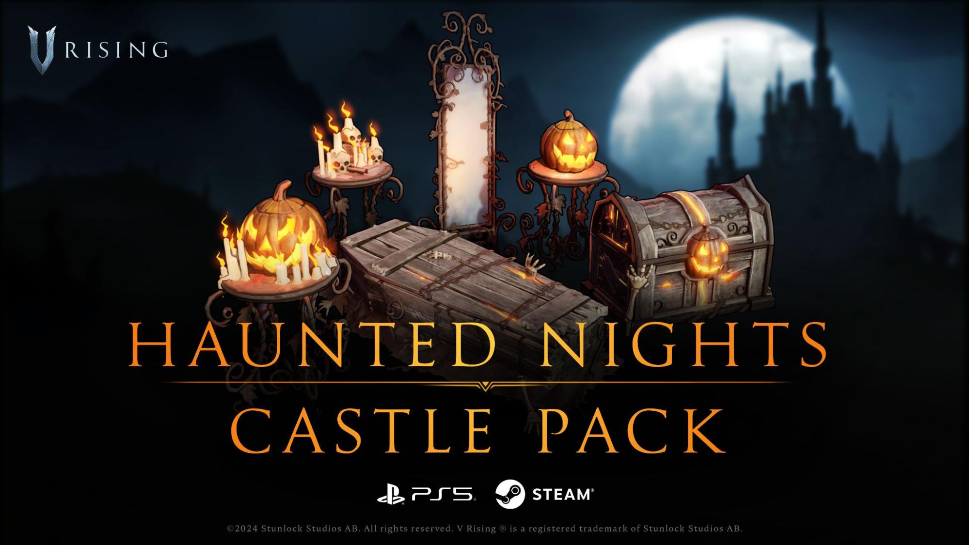 Have you spent the year jealous of your more elder Vampire siblings and their wicked seasonal decor? Seethe in envy no longer, my children! Drape yourself in spiderwebs with the return of the Haunted Nights Castle Pack! This ENTIRELY FREE seasonal DLC will be available on Steam and PlayStation 5 to be claimed from October 14 to November 14 and then go dormant once again. Please keep in mind that after you claim this pack, it will become available to you permanently, so you won’t lose access to it when the season is up.