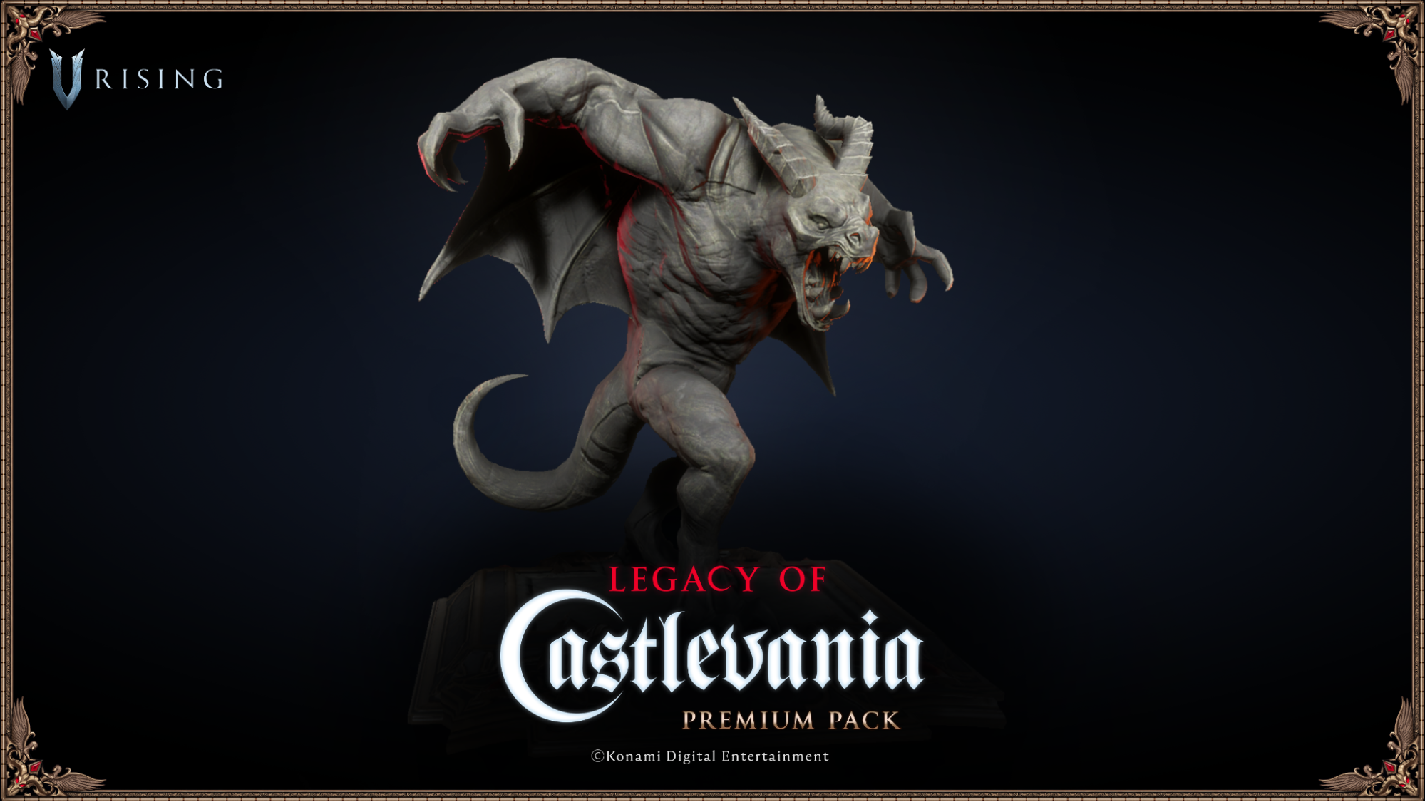 Introducing the Legacy of Castlevania Premium Pack! This pack includes new cosmetics that allow you to take on the storied aesthetics of hair, cloth, and form from one of the all-time classic Vampire franchises. Invoke style and indulge in your nostalgia alongside the action-packed V Rising experience you’ve come to know and love.