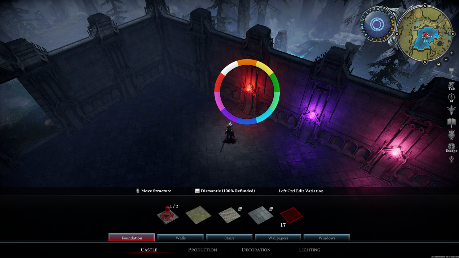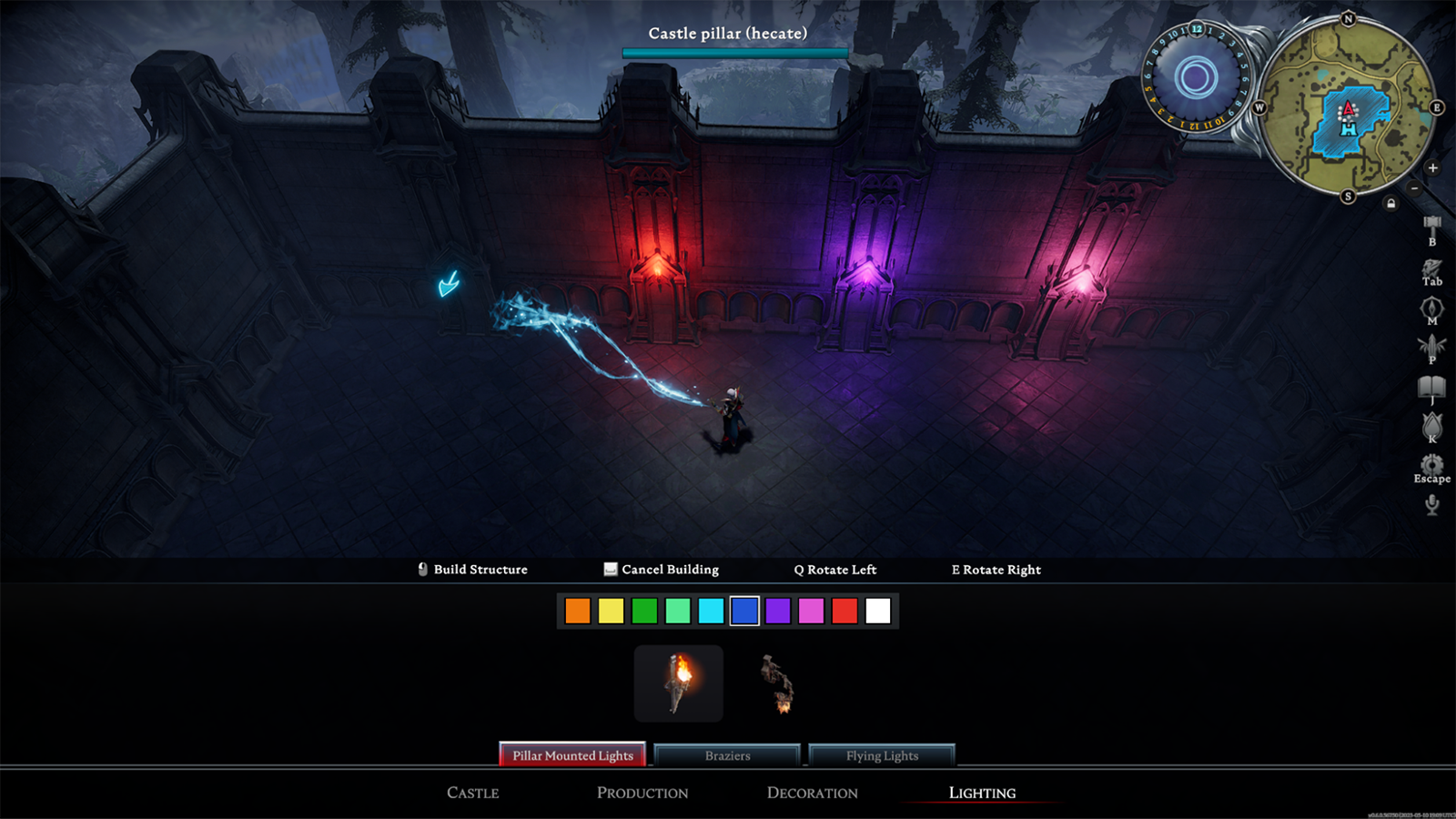 Select objects can now be dyed in different colors. This includes torches, carpets, windows, select furniture, and more. Changing the color of an item does not cost any extra material. You may also edit the color of objects placed in your castle via a color wheel.