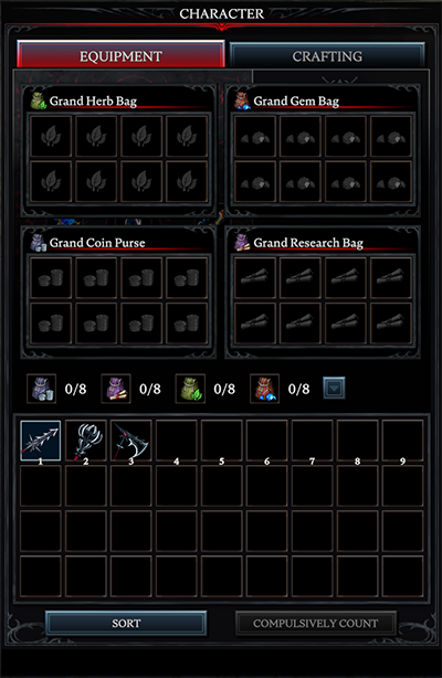• Added bag slots and bag inventories to the Character screen.