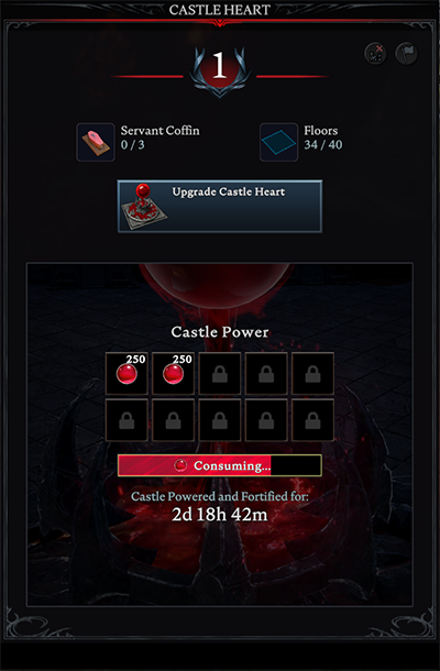 The castle heart may now be upgraded up to level 5 from the previous maximum, level 4. The default bonuses for each level are as follows: