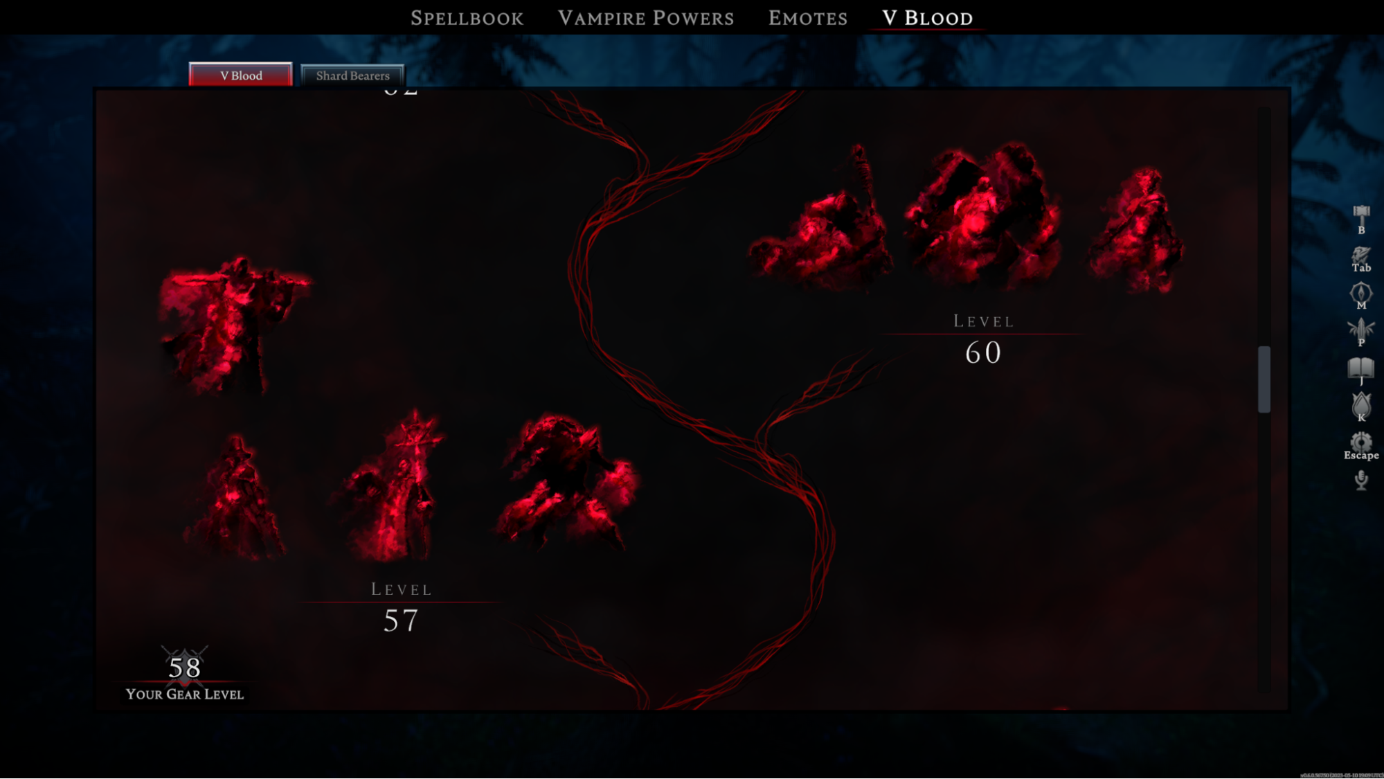 • V Bloods are now grouped by level in a tree structure to improve progression.